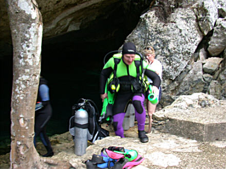 Back at the Cenote we unload our gear and start suiting up for the dive. We have