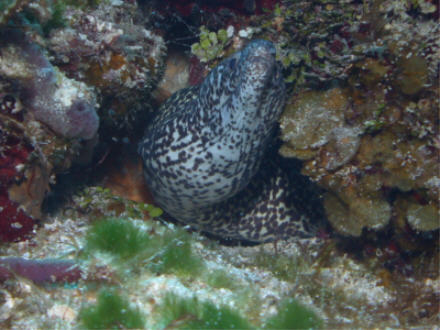 colors and disappearing. We see a few common fish, as we make our way through